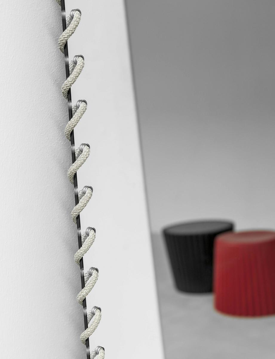 The fabric cord is available in four captivating colors – white, anthracite grey, red, and dove-grey, offering versatility to match any color scheme or aesthetic. The Spiral Mirror’s rectangular shape and modern style make it an ideal addition to any room – be it the living room, bedroom, hallway, or even a chic office space.