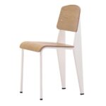 Jean Prouvé’s innovative approach to design is evident in the construction of the Standard SP chair. The back legs are specifically designed to bear the weight of the user’s upper body, while the front legs are made of steel tubing for a lighter load. This thoughtful design ensures both style and functionality in one elegant piece.