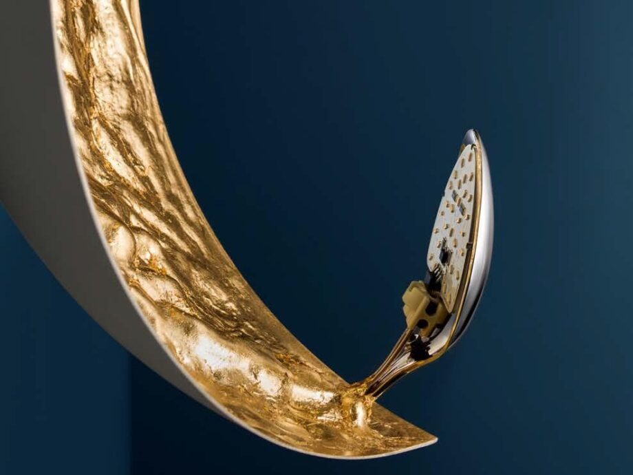 Designed to separate the light source from the lighting object, the Stchu-moon 05 wall lamp creates a mesmerizing effect as the light is refracted off the irregular surfaces, casting a beautiful and unique pattern that transforms your space into a glowing oasis. The steel spoon lamp holder adds a modern touch to the design, while the sleek aluminum construction exudes sophistication and style.