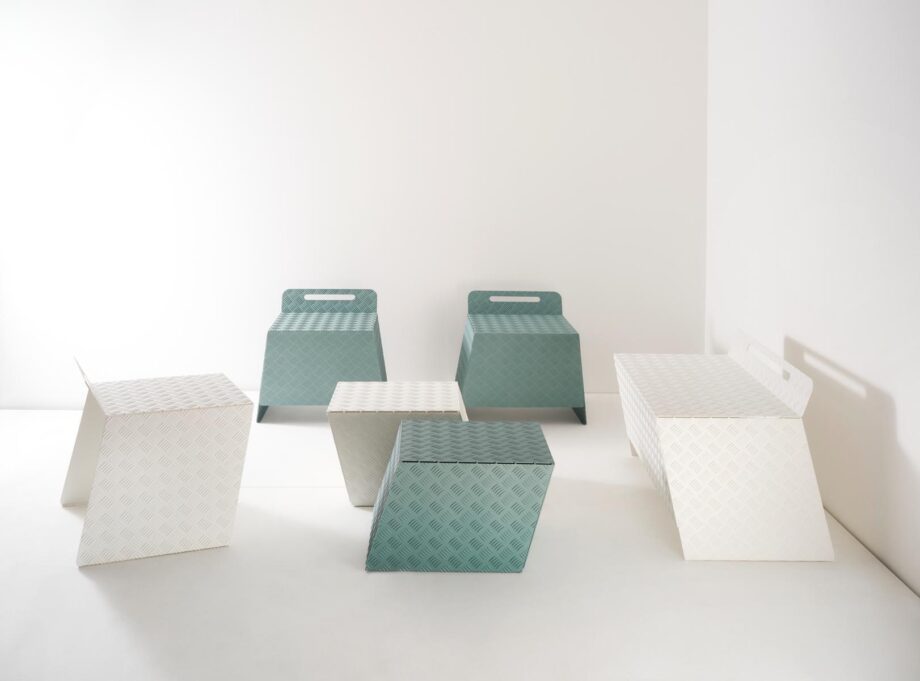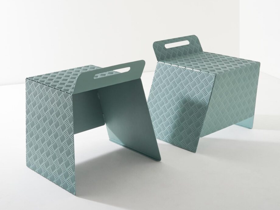 The Street collection boasts a simple yet eye-catching design, featuring geometric shapes and a ‘mandorlata’ aluminium sheet surface that adds a touch of industrial-chic to your home. The metal construction of these bar chairs ensures durability and stability, making them a long-lasting addition to your interior decor.