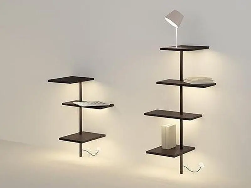 With its innovative design, the Suite wall lamp not only illuminates your space but also serves as a stylish statement piece. The LED lighting provides a warm and inviting glow, creating a cozy ambiance in any room. The dynamic structure of the lamp features multiple vertical planes at varying heights, offering practical surfaces for displaying everyday items.