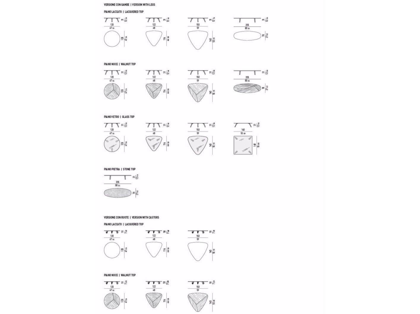 For those seeking added functionality, Sullivan offers versions with wheels in the triangular and round shapes, extending practicality without compromising on the design. The dynamic slant of the aluminum legs in the Smoked Grey glass-topped version with beveled edges is particularly striking, showcasing the thoughtful craftsmanship that goes into each piece.