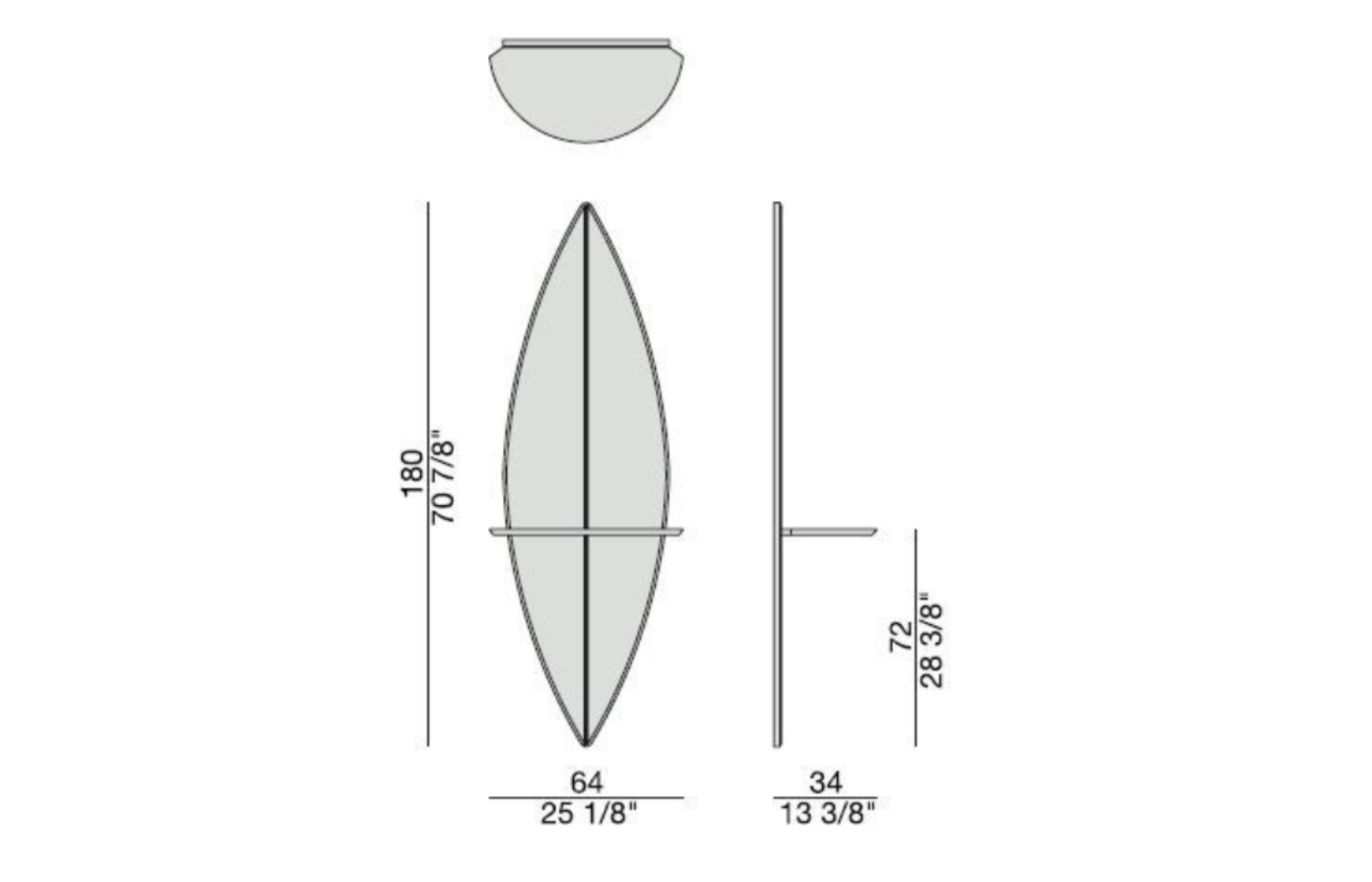 The wall-mounted design of the Surf 2 mirror allows for easy installation, providing a seamless and stylish addition to any room. The addition of shelves adds functionality to the mirror, giving you the perfect place to display your favorite decorative items or essentials.