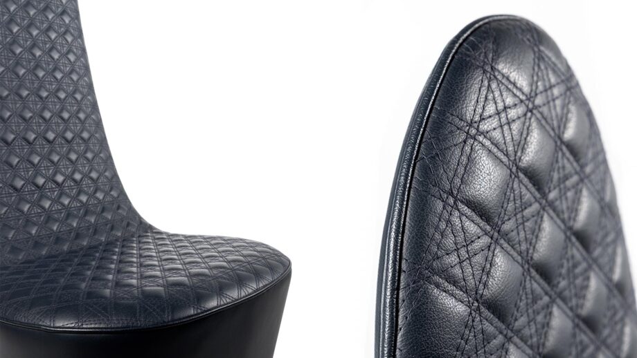 The Swan chair features a sleek wooden structure upholstered in a selection of premium materials such as leather, velvet, and Nabuk. The upholstery is available in a range of textures and colors to suit your unique style. The San Marco stitching on the seat and interior back adds a touch of elegance to the design.
