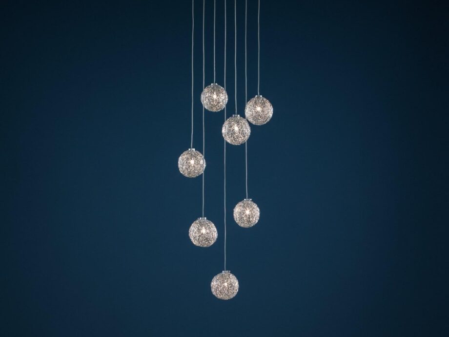 Bring a touch of modern elegance to your space with the Sweet Light Chandelier from the Fil de fer collection by Enzo Catellani. This stunning pendant lamp features a satin metal base adorned with spheres crafted from natural aluminium wire, creating a unique and eye-catching design. The interior of the spheres is illuminated by energy-efficient LED bulbs, providing a warm and inviting glow to any room.