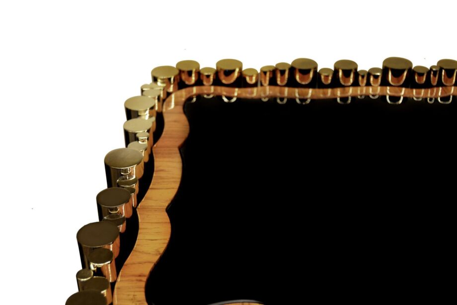 One of the standout features of our Symphony line is the expert use of materials. The table is wrapped in a high-quality veneer, its surface exhibiting a rich rosewood finish. The brass details, gold-plated for that extra touch of grandeur, provide a stunning contrast and heighten the visual allure of the piece.