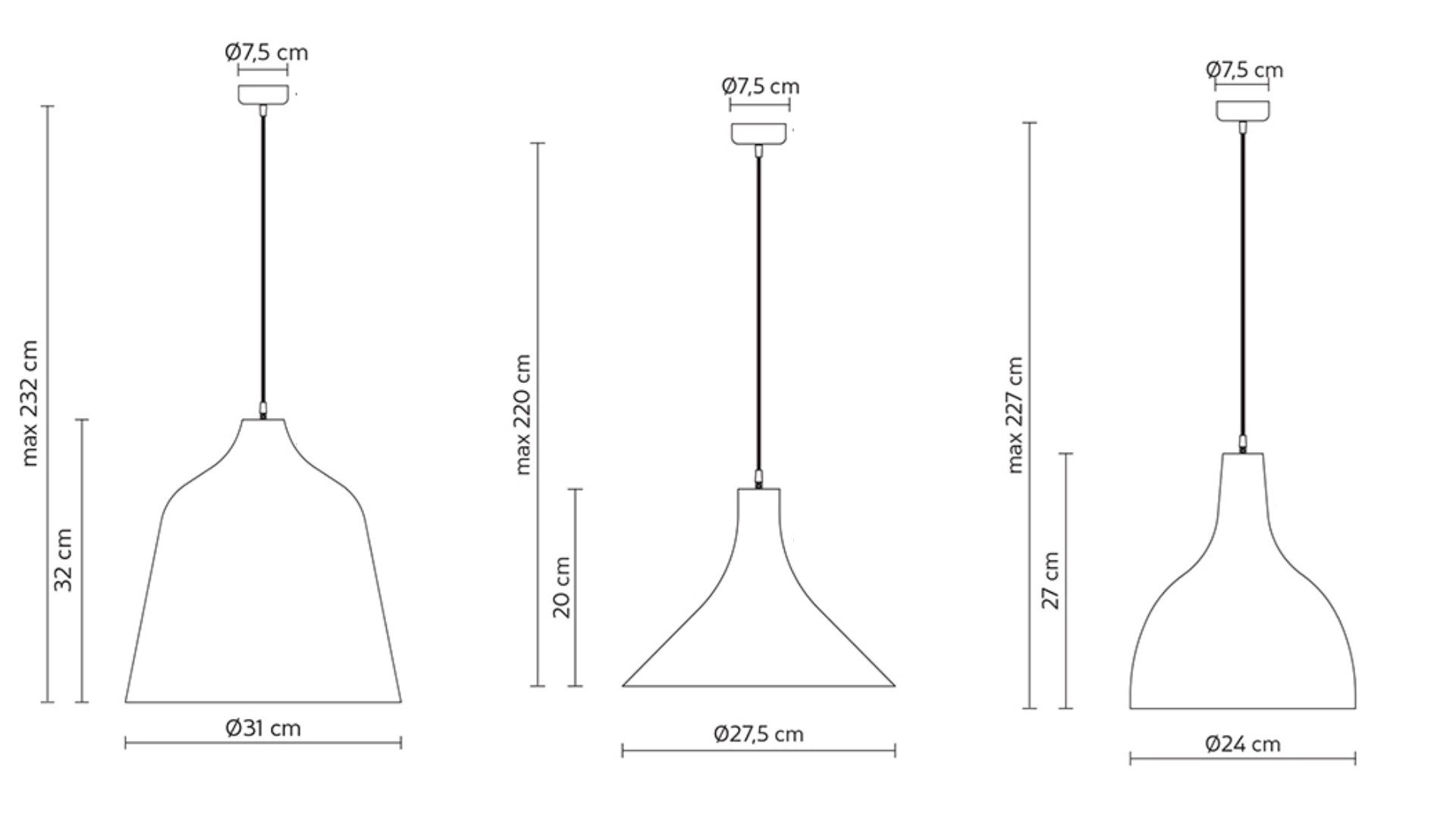 Tags: Ceramic pendant lamps, Modern pendant lampsSame category: Karman Pendant lampsDimensions: Suspension 1 Ø 31 x H 32 cm , Suspension 2 Ø 27,5 x H 20 cm , Suspension 3 Ø 24 x H 27 cm