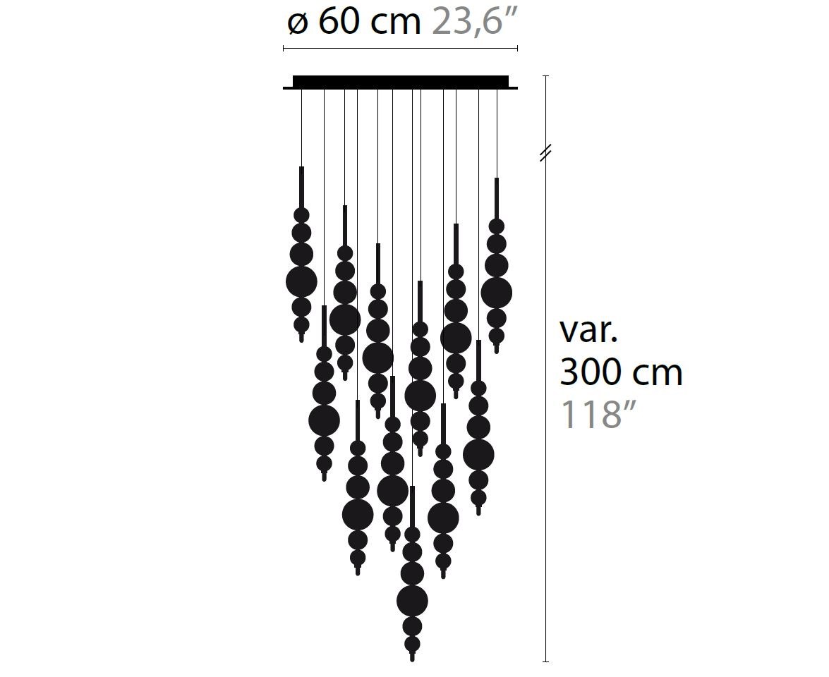 Crafted from hand-blown glass balls, the Tears From Moon H12 Mini combines elegance and modernity in a unique way. The delicate glass balls come in a variety of colors including white, black, silver, gold, and more, allowing you to choose the perfect one to complement your space.