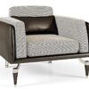 Discover the epitome of timeless elegance with our Majestic armchair, an exquisite addition to any home or office setting. Crafted with intricate attention to detail, this armchair offers a harmonious blend of luxurious fabric and premium leather, resting atop a sturdy chromed brass basement. With the Majestic collection, we bring you more than just furniture; we bring you a piece of Italian style that has its own unique perspective.