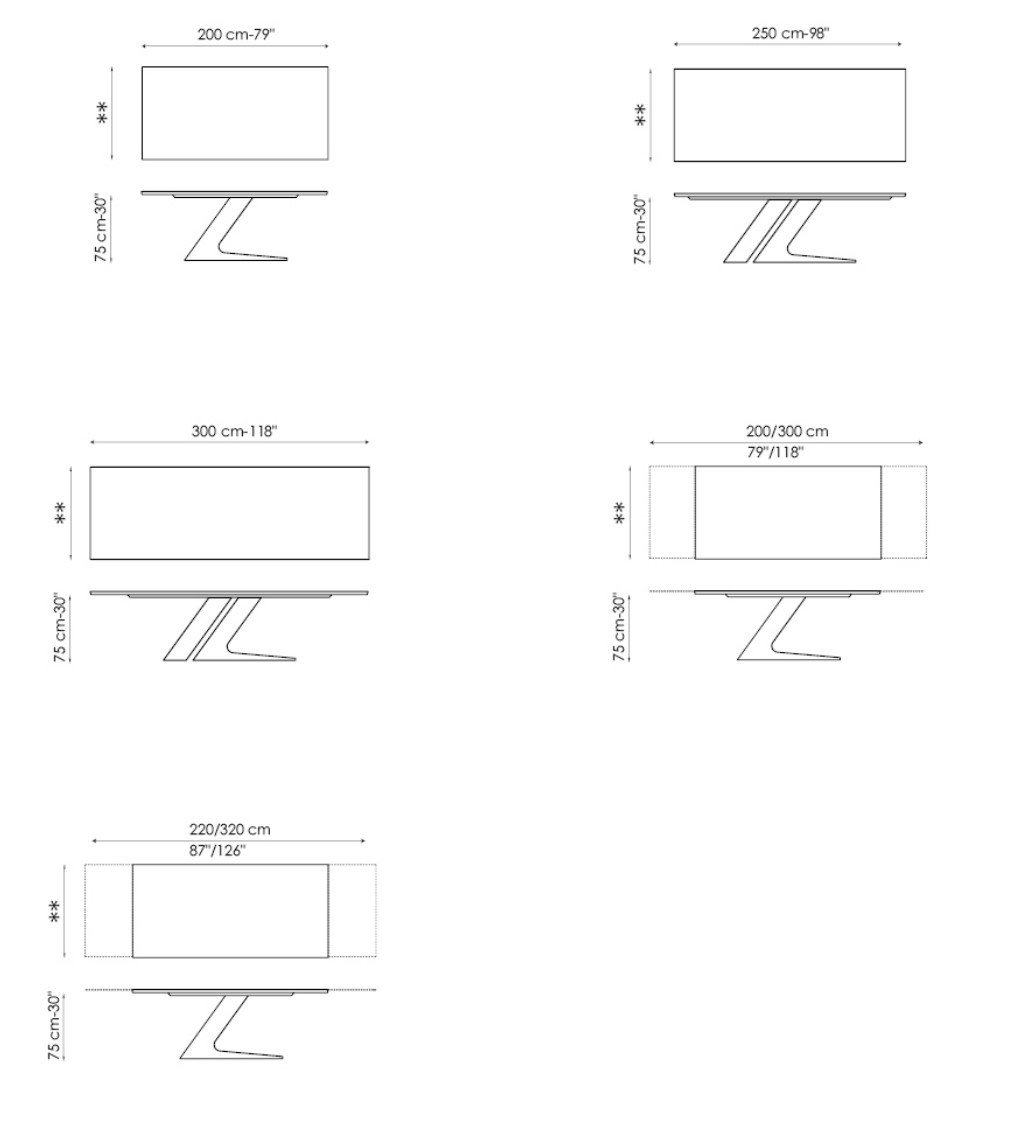 Whether you opt for the double base for the 250 and 300 cm tops or the single base for the 200 and 220 cm tops, the TL table is sure to make a statement in your home. Bring a touch of Italian design excellence to your living space with the TL table and elevate your interior to new heights of luxury.