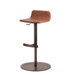 The Torso stool is a sleek and versatile addition to any space, featuring a swivel central metal leg and an upholstered seat for comfort. Complete your ensemble with the matching footstool, equipped with a gas-height adjustment mechanism for added convenience.