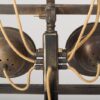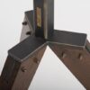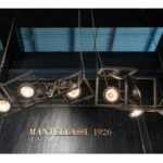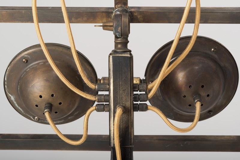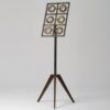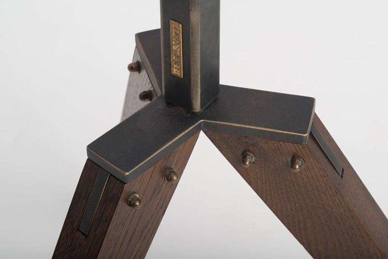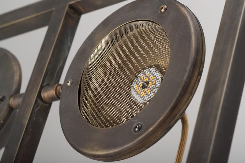 The Totò floor lamp features a striking design inspired by classic film reflectors of the 1930s Hollywood era. Its sturdy antique oak base adds a touch of rustic warmth, while the hand-etched metal mesh illuminates the space with a mesmerizing glow. With six adjustable brass spotlights mounted on a tripod, this lamp combines form and function seamlessly.