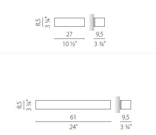 Available in two sizes, 27×9.5×8.5 cm and 61×9.5×8.5 cm, the Toy Gypso wall lamp is equipped with energy-efficient LED bulbs that provide a warm, inviting glow. With a color temperature of 3000K and a high color rendering index of Ra 80, this lamp ensures optimal lighting quality for your space.