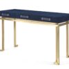 The Trafalgar dressing table is designed with meticulous attention to detail, featuring leather handles that provide a stylish contrast to the metal base. This stunning piece seamlessly blends modern design with timeless craftsmanship, creating a focal point in any bedroom.