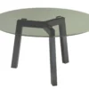 Crafted with an aluminum base available in graphite, white, titanium, or hand brushed brass finishes, the Treble table exudes sophistication and style. The 12mm thick, tempered glass top is available in extra light or fumé to suit your aesthetic preferences.