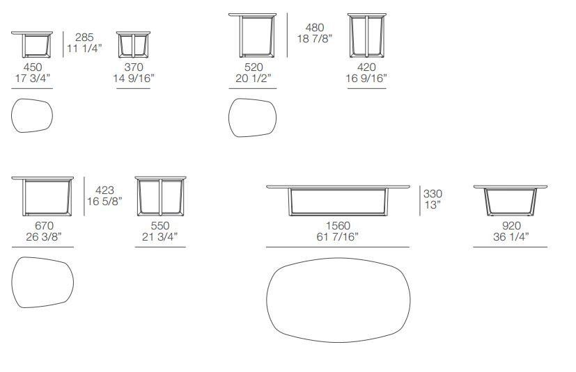 With tops and heights available in various dimensions, the Tridente coffee tables cater to different needs and preferences. The unique T structure design allows for seamless integration alongside a sofa, creating a harmonious and stylish living room setting. Whether used individually or grouped together, these coffee tables add a touch of charm and functionality to any space.