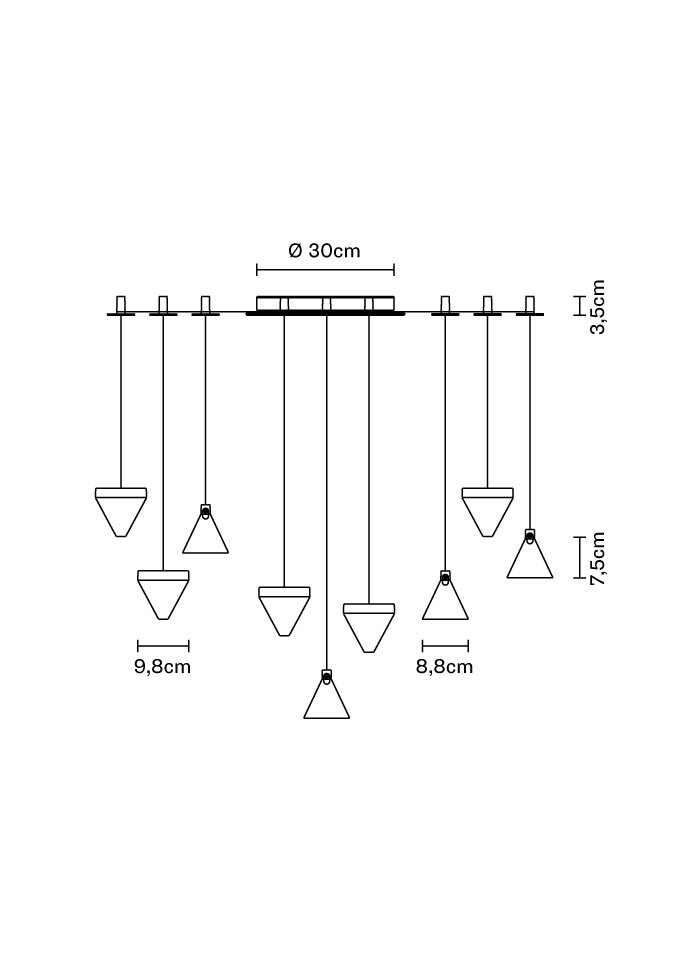 Available in three finishes—polished aluminum, anthracite grey, and bronze plate—the Tripla 9 Spots pendant lamp can be tailored to your personal style. Create a cohesive look by pairing it with other fixtures from the Tripla collection, such as the table lamp, wall lamp, or ceiling lamp. The Tripla series also features a recessed lighting fixture for a seamless integration into your design scheme. With its timeless appeal and impeccable craftsmanship, the Tripla 9 Spots pendant lamp is a statement piece that promises to elevate your interior decor.