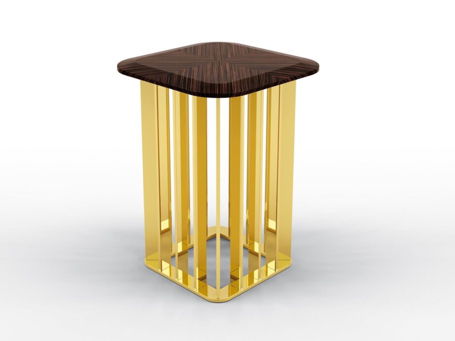 Enveloped in the warm, ebony tones of Makassar and standing on a base gilded in gold, the Triton coffee table conveys a sense of elegance and sophistication that is sure to give your living room a luxurious ambiance. This square-shaped table is a superb manifestation of modern design that seamlessly melds functionality with aesthetic appeal.