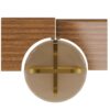 The Tulip Tris is not just a coffee table set but a statement piece that transforms your living space into a hub of style and sophistication. Crafted with a blend of premium materials, it features a metal frame with a satin finish, giving it a sleek and contemporary look. The round table in the set boasts a bronze glass top with a diamond beveled edge, offering a touch of opulence to your space. The side tables, on the other hand, are adorned with canaletto walnut wooden tops, bringing warmth and an element of nature into your home.