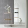 Elevate your space with the stunning TWEET bookcase from Italy. This modern masterpiece redefines the traditional bookcase with its sleek metal design and freestanding structure. Designed to showcase your favorite books and decorative items, TWEET features a unique golden cage frame with a round base that adds a touch of elegance to any room.