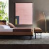 The Twelve A.m. bed is designed to offer both style and functionality, with a sleek wooden frame supported by slim metal legs. The bed can be customized with a curved leather or fabric holder to accommodate a variety of mattresses, ensuring a restful night’s sleep. Additionally, the bed can be fitted with a small projecting shelf at the back, making it a versatile and practical choice for any bedroom.