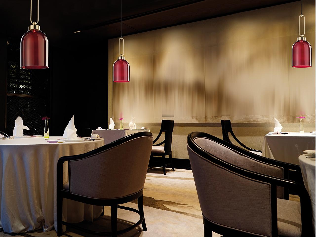 Elevate your space with the exquisite Valentina pendant lamp from THDP’s distinguished collection. This modern piece imbues a sense of sophistication and elegance to any room it graces. The captivating design features a sleek glass dome diffuser, available in striking red or smoked hues, suspended by a brushed gold or iron black finished connection.