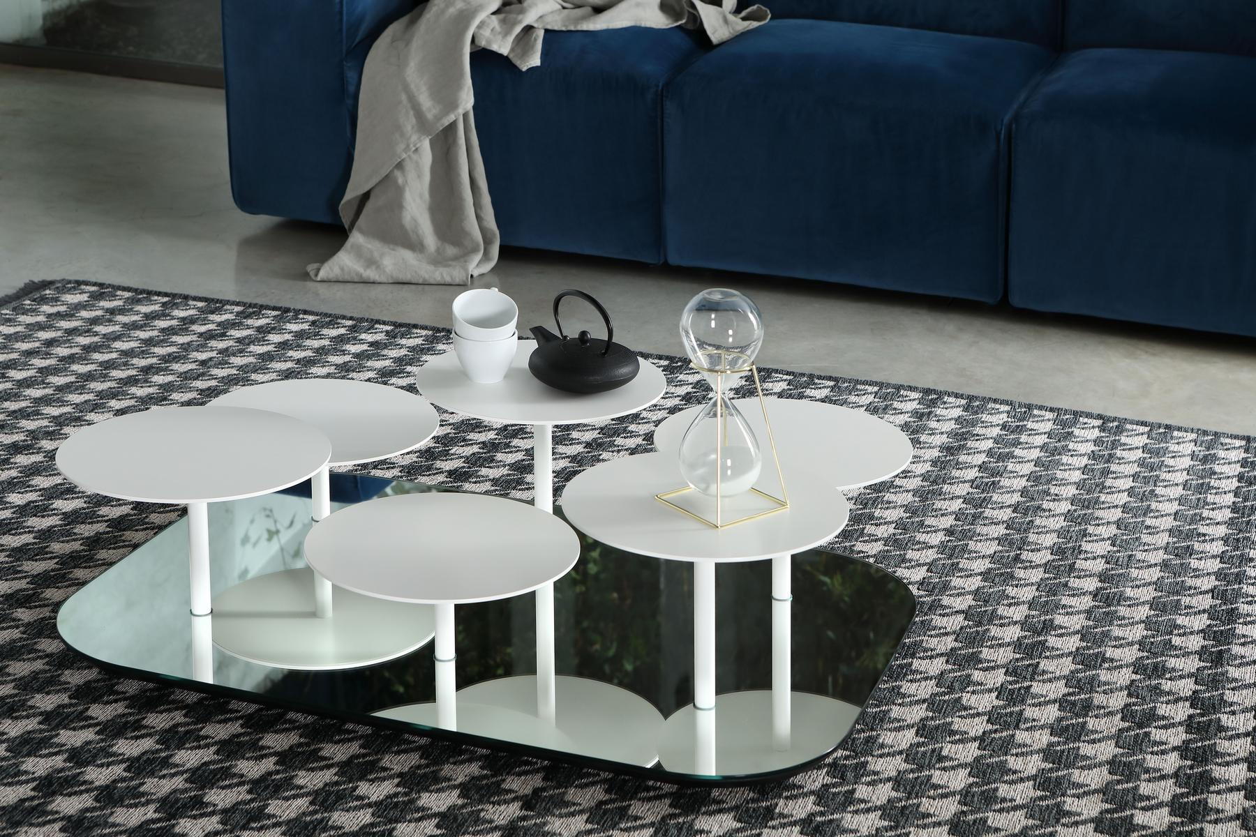 With its small round varnished metal tops placed on a mirror base, the Valentine coffee table creates a stunning visual effect that resembles a tranquil lake reflecting light. Whether you choose a copper, white, ocean blue, brick red, or gold finish, this table will effortlessly enhance the ambiance of your room, adding a touch of luxury and sophistication.