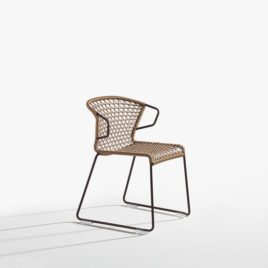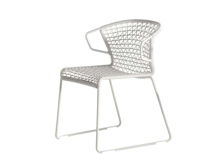Transform your outdoor space with the sleek and stylish Vela chairs. Designed by the renowned Hannes Wettstein, the Vela collection embodies modern sophistication with a touch of artisanal craftsmanship. Crafted from durable steel, the Vela chairs feature a unique design with a chrome or painted metal frame that is intricately woven with crude, nautical, or PVC rope for a distinct look.