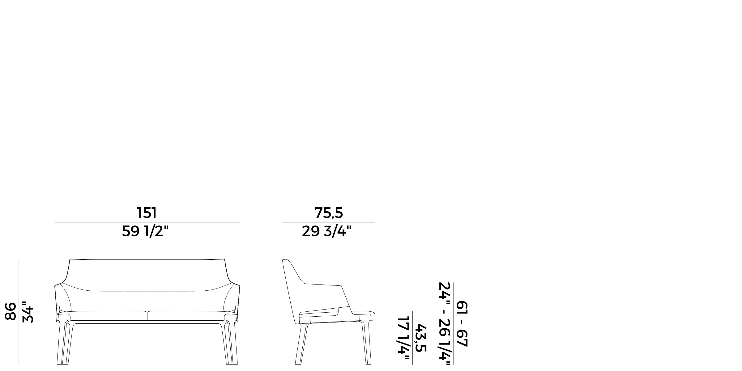 Designed to meet a variety of needs, the Velis sofa is perfect for everyday lounging, creating a cozy sitting area, or adding a touch of elegance to your office or home decor. The combination of the upholstered seat and the Canaletto walnut or ash wood frame creates a harmonious balance between comfort and structure. The Velis sofa is available in different configurations, including a single or double stool, bench, lounge chair, and more.