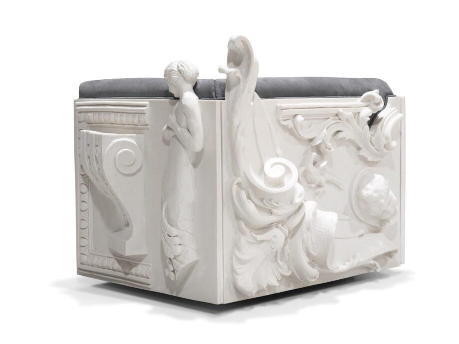 The Versailles armchair boasts a sturdy wood base, meticulously handcrafted to ensure durability and longevity. The armchair is adorned with panels sculpted manually from resin, employing restoration techniques similar to stone for an exquisite finish. This technique adds a unique texture and depth to the armchair, making it a standout piece in any interior setting.