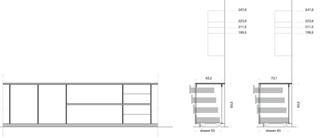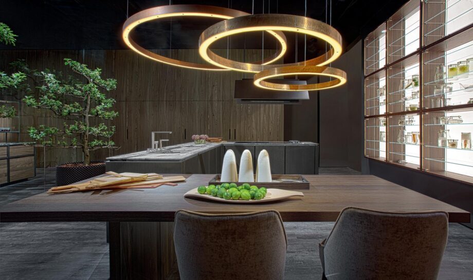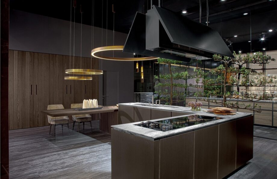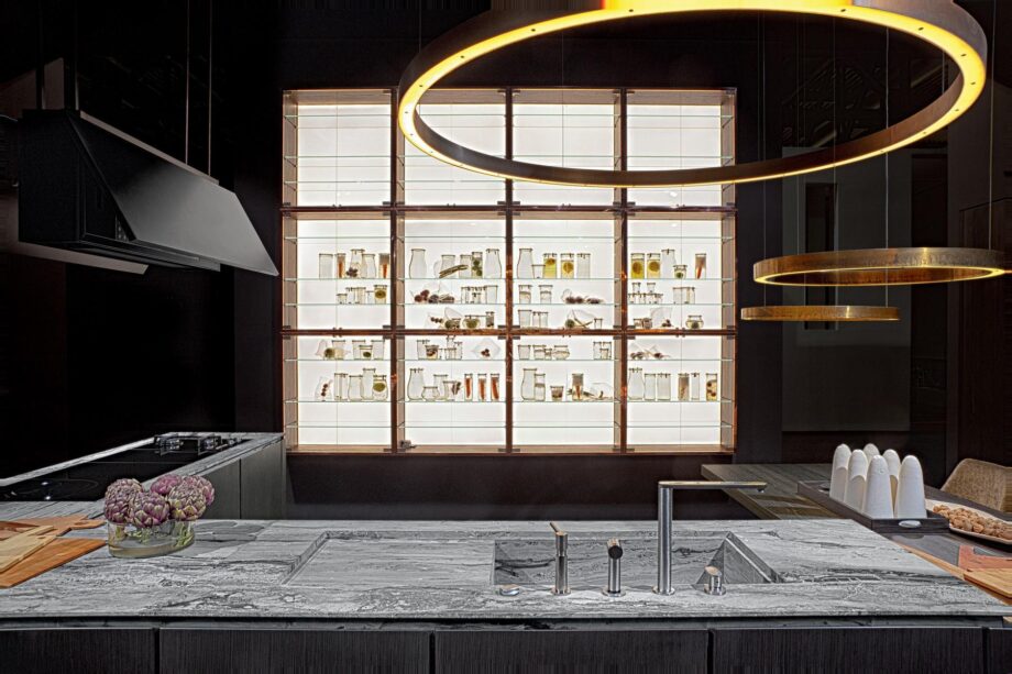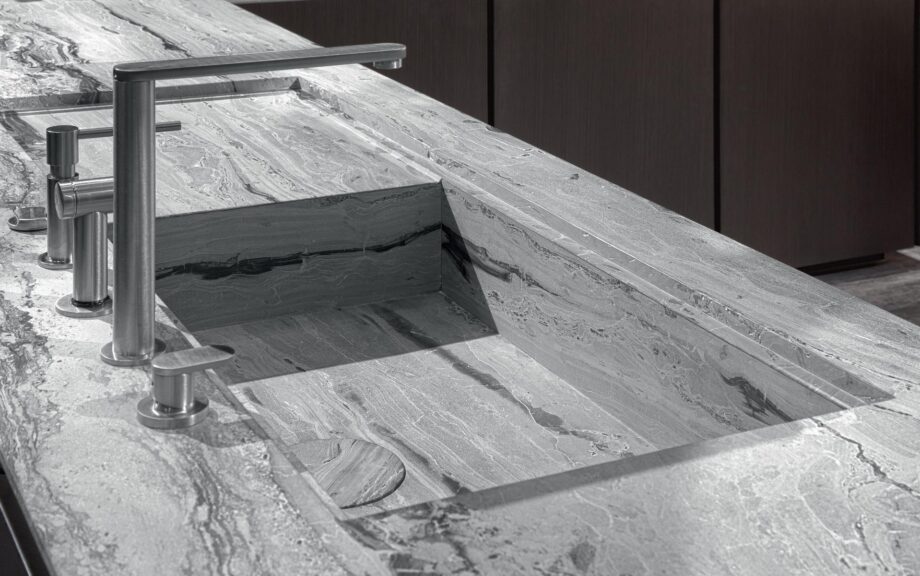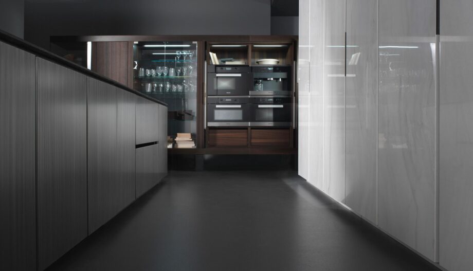 Designed with clean lines and a minimalist approach, the W75 kitchen is a statement piece that will elevate any interior design. The vertical inwards diamond-cut panels draw attention to the exquisite materials used, creating a three-dimensional depth effect that is both captivating and luxurious. The sleek worktop, available in a variety of finishes including natural stone, quartz, steel, and Corian, complements the stunning fronts in finishes ranging from wood to metal.