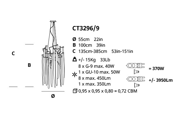 Illuminate your space with the warm glow of halogen light, enhancing the ambiance and creating a cozy atmosphere. Whether you’re looking to make a statement in your living room or add a touch of sophistication to your entryway, the Waterfall Ct3296/9 is the perfect choice for those who appreciate beautiful design and exquisite craftsmanship.