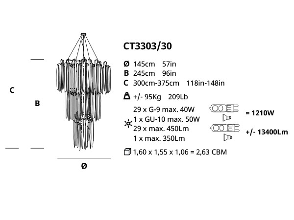 Illuminate your space with the warm glow of halogen light, creating a welcoming ambiance that is both functional and stylish. Whether you are looking to make a statement in your living room, dining area, or entryway, the Waterfall Ct3303/30 pendant lamp is sure to impress. Bring a touch of luxury to your home with this exquisite piece that combines artistry and craftsmanship in perfect harmony.