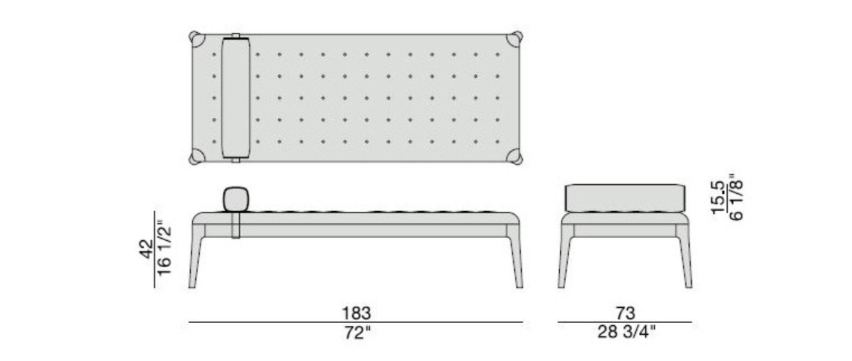 The Webby day bed is upholstered with a luxurious capitoné cover available in calfskin or a selection of fabrics from the collection, allowing you to customize the piece to suit your unique style. The tufted upholstery adds a touch of texture and depth to the design, while the option to choose tone-on-tone or contrasting buttons adds a playful element to the overall look.