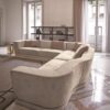 Choose from the standard depth of cm 100 or the larger double depth of cm 100/120 to customize your comfort level. The sofa’s beech wood structure and memory foam padding ensure long-lasting comfort and support, while the various finish options for the chromed metal ring add a personalized touch.