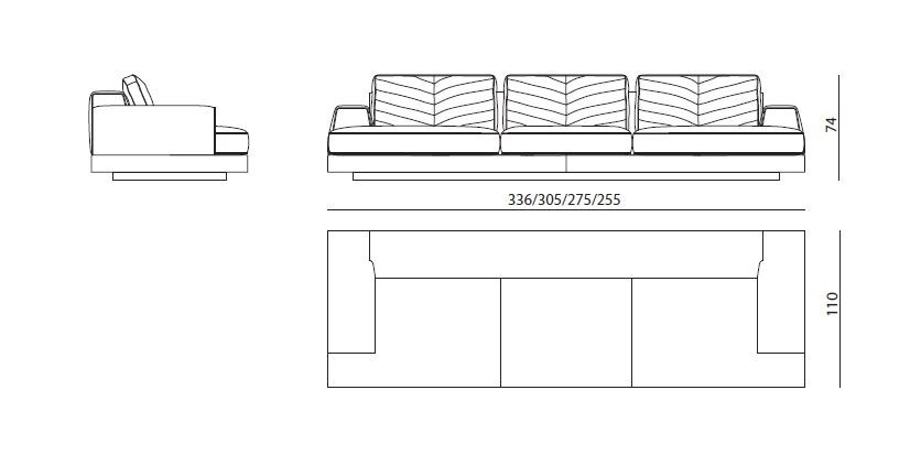Constructed with a strong wood frame and high-quality fabric upholstery, Xavier offers the ultimate in comfort with seat pads made of polyurethane, memory foam®, and feather. The back pads are designed with chevron detailing for added elegance and support. The optional wooden armrest and backrest panels upholstered in leather or fabric, adorned with solid satin metal elements, add a touch of opulence to this already stunning piece.