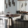Crafted with a durable metal base and a central leg, the Yoda Wood table is built to last while exuding a sense of sophistication. Available in sleek white, black, or graphite lacquered finishes, the base complements the luxurious wood tabletop beautifully. Choose from Calacatta, Alabastro, or Ardesia flower options to customize the look to suit your taste and style.