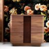 Whether in a high or low casing, the dresser and chest foundations are constructed with solid Canaletto walnut, while the end table features a solid Canaletto pecan or rosewood india frame. Each piece is meticulously crafted to elevate your space and create a sense of luxury.