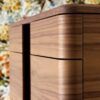 The night creations series from the York collection boasts a frame in blockboard and bended multi-ply with Canaletto pecan facade, ensuring durability and longevity. The top is available in Canaletto pecan veneer or rosewood india, with the option of marble for a touch of opulence.