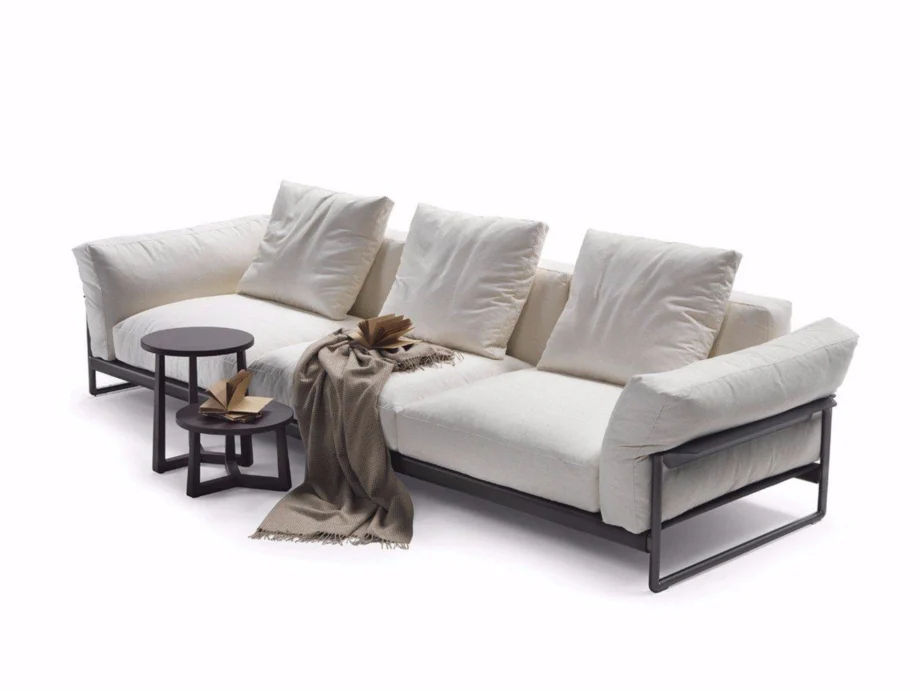 Designed with a thoughtful combination of form and function, the Zeno Light sofa boasts a seat cushion crafted from a blend of down and resilient inner core, ensuring lasting comfort and support. The backrest is made from high-quality foam, polyurethane, and dacron, with a metal insert that enhances its durability.