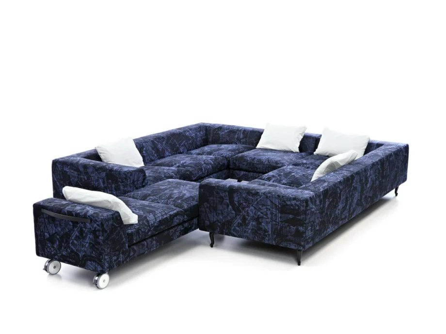 Elevate your living space with the Zliq Island sofa designed by Marcel Wanders. Originating from the Netherlands, this modern masterpiece is the epitome of luxury and style. Crafted with a metal base for durability, this modular sectional sofa features memory foam padding with an upholstered, fire retardant cover that is both cozy and easy to maintain.